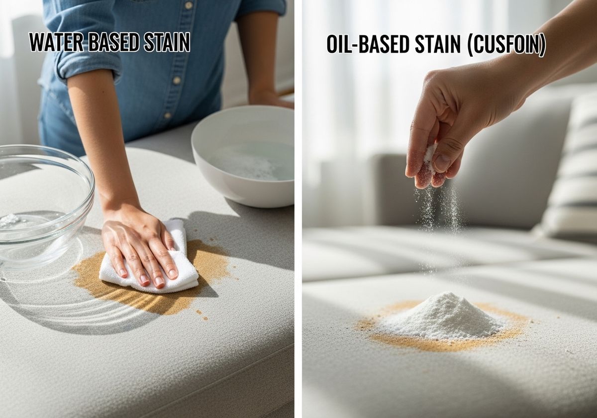 For water-based stains, mix a mild detergent with water and gently blot the area. Use a clean, damp cloth to remove the soap residue, then blot dry. For oil-based stains, sprinkle baking soda on the affected area and let it sit for several hours to absorb the oil. Vacuum up the baking soda and repeat if necessary. Always work from the outside of the stain toward the center to prevent it from spreading.